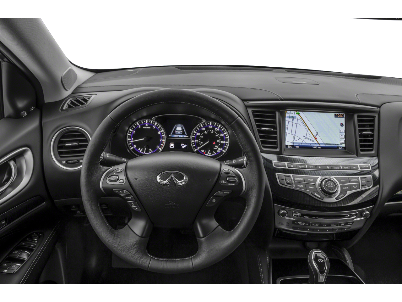 Essential Package: Front and Rear Sonar Sensors (2 Front/2 Rear); Leather-Appointed Seat Trim; Rain-Sensing Front Windshield Wipers; Around View Monitor with Moving Object Detection; INFINITI InTouch with Navigation and InTouch Services; Illuminated Kick Plates. Proactive Package: Active Trace Control; High Beam Assist (HBA); Front and Rear Sonar Sensors (4 Front/4 Rear); Distance Control Assist; Front Pre-Crash Seatbelts; Auto Side Dimming Mirrors; Backup Collision Intervention (BCI); Lane Departure Prevention (LDP); Intelligent Cruise Control (full-Speed Range); Eco Pedal; Blind Spot Intervention (BSI); Lane Departure Warning (LDW). Sensory Package: Bose Centerpoint 15-Speaker Sound System; 1st and 2nd Row Unique Hour Glass Seat Quilting; 2nd and 3rd Row Moonroof with Power Rear Sunshade; 20" 15-Spoke Aluminum-Alloy Wheels; Climate-Controlled Front Seats; Heated 2nd-Row Seats; Motion Activated Liftgate; 235/55R20 H-Rated All-Season Tires; Advanced Climate Control System (ACCS); Maple Interior Accents; Cross Bars; Power Return 3rd Row Seat Back. Illuminated Kick Plates. Splash Guards. **Equipment listed is based on original vehicle build and subject to change. Please confirm the accuracy of the included equipment by calling the dealer prior to purchase.**