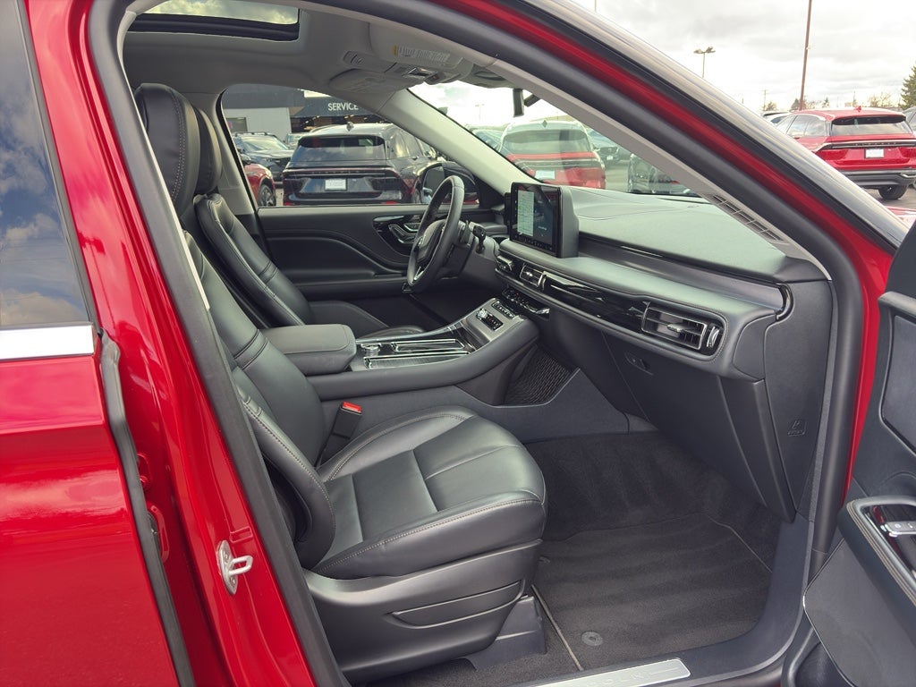 It offers Android Auto for seamless smartphone integration. Protect this 2025 Lincoln Aviator from unwanted accidents with a cutting edge backup camera system. Keep your hands warm all winter with a heated steering wheel in this unit . The Lincoln Aviator has a clean AutoCheck report. This model features a hands-free Bluetooth® phone system. Start the Lincoln Aviator from inside with remote start. The leather seats in this unit are a must for buyers looking for comfort, durability, and style. This vehicle's Cross-Traffic Alert: Safeguarding you from unexpected traffic when reversing. This vehicle has only one previous owner, verified by AutoCheck. This model has automated speed control that adjusts to maintain a safe following distance, enhancing highway driving convenience. You'll never again be lost in a crowded city or a country region with the navigation system on it. This model offers Apple CarPlay for seamless connectivity. Conquer any rainy, snowy, or icy road conditions this winter with the all wheel drive system on this mid-size suv.